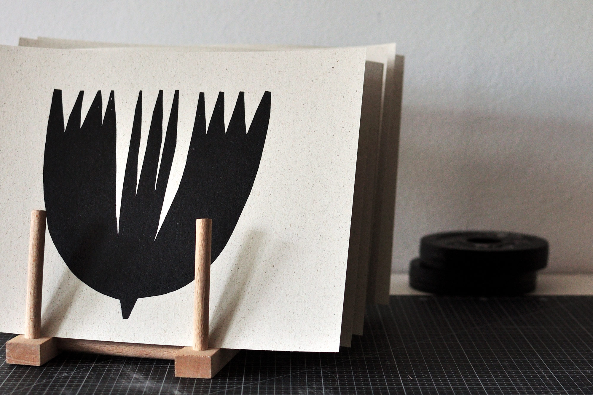 Choose between three designs. They are based on my many paper cuts, which I have translated into linocuts.